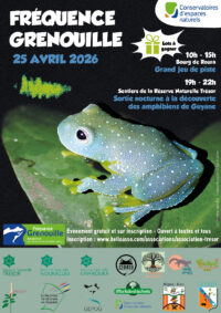 « Fréquence Grenouille » est une manifestation nationale portée par la Fédération des conservatoires d’espaces naturels. Pendant trois mois, elle permet aux acteurs participants de faire découvrir les zones humides et les espèces qui en dépendent, notamment les amphibiens très nombreux en Guyane. Elle vise également à sensibiliser le public à l’importance de leur protection. Il s’agit en effet de milieux naturels devenus rares, déjà fortement dégradés ou détruits dans de nombreuses régions du monde.