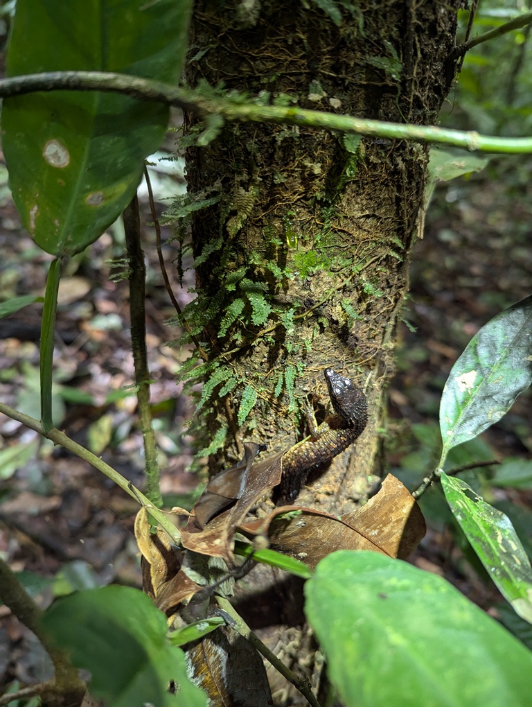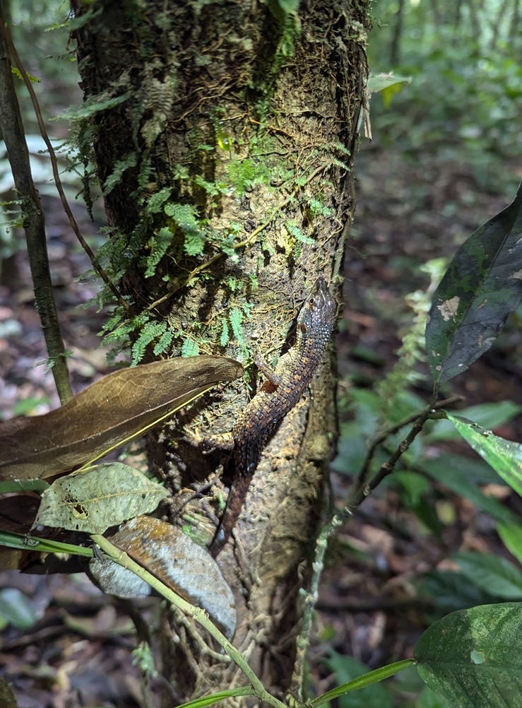 Espèce de la famille des Gymnophthalmidae, le Neusticure du Suriname est un lézard caïman : il est surnommé ainsi du fait de son aspect général faisant penser à ces grands reptiles. Sa couleur marron sombre le rend discret dans les habitats aquatiques qu’il fréquente, qui peuvent être des renfoncements dans les arbres, le lit d’un cours d’eau rocheux ou encore des micro-vasques rocheuses. Semi-aquatique, il chasse des alevins de poissons et des insectes. Sa taille va jusqu’à 9,5 mm de la tête et du corps (cette distance correspond à la LMC : longueur maximale du museau au cloaque, ce dernier étant situé entre les pattes arrière de l’animal). Sa queue est aplatie, par rapport à son corps qui est plutôt cylindrique. Une distinction est à noter : le Neusticure du Suriname a des points blancs sur les lèvres. Il possède des écailles dorsales en relief au niveau de la nuque, tronc et base de la queue ; c’est pour cette raison qu’il était auparavant appelé « Neusticure rugueux ». Une confusion est possible avec le Neusticure sillonné (Neusticurus bicarinatus), qui lui est plutôt jaune-brun, avec des tâches jaunes sur les flancs.
