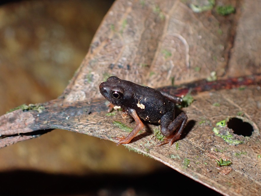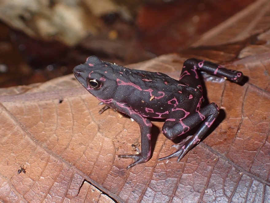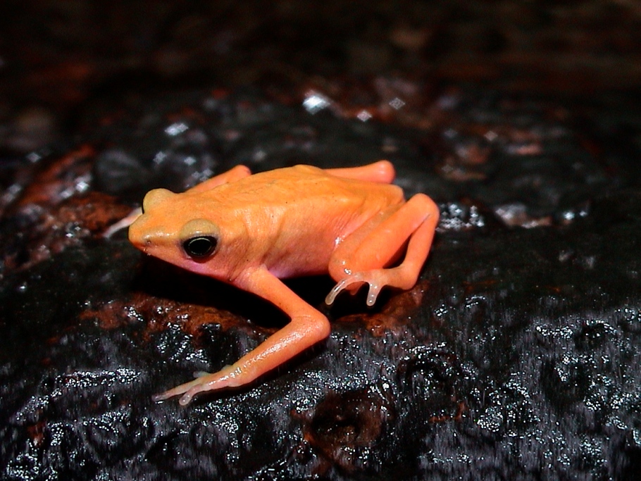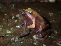 Atelopus est un genre de crapauds diurnes endémiques des régions néotropicales qui compte de nombreuses espèces, particulièrement diversifiées dans les hauteurs des cordillères d’Amérique centrale et des Andes. Il existe en Guyane deux espèces, Atelopus hoogmoedi dans le sud et qui remonte vers le nord le long du Maroni jusqu’au mont Kotika et Atelopus flavescens qui occupe les deux tiers nord du territoire.