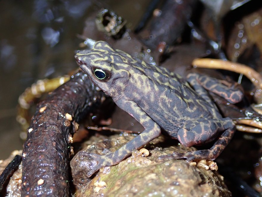 En Guyane, loin des hauteurs atteintes par les sommets des montagnes d’Amériques centrales et de la cordillère des Andes, nous pensions être épargnés de l’action délétère de Batrachochytrium dendrobatidis bien qu’il soit présent sur le territoire. Cependant, des chutes évidentes dans les effectifs de certaines populations ont déjà été constatées comme c’est le cas sur la réserve naturelle Trésor. Autrefois communs, ils sont devenus aujourd’hui beaucoup plus rares et n’ont plus été contactés de criques où ils étaient pourtant systématiquement relevés. Sur les sentiers de la réserve aucun contact n’avait été réalisé que ce soit lors des suivis ciblés ou lors des nombreux passages sur le secteur pendant plusieurs années. Ce n’est que depuis l’an dernier que quelques atélopes ont commencé à y être de nouveau observés. Doit-on y voir un retour timide des atélopes sur la réserve ? Les observations, systématiquement relevées par les agents de la réserve au cours de leurs missions, restent tout de même peu fréquentes et leurs chants grinçants manquent encore désespérément le long de nombreux cours d’eau…